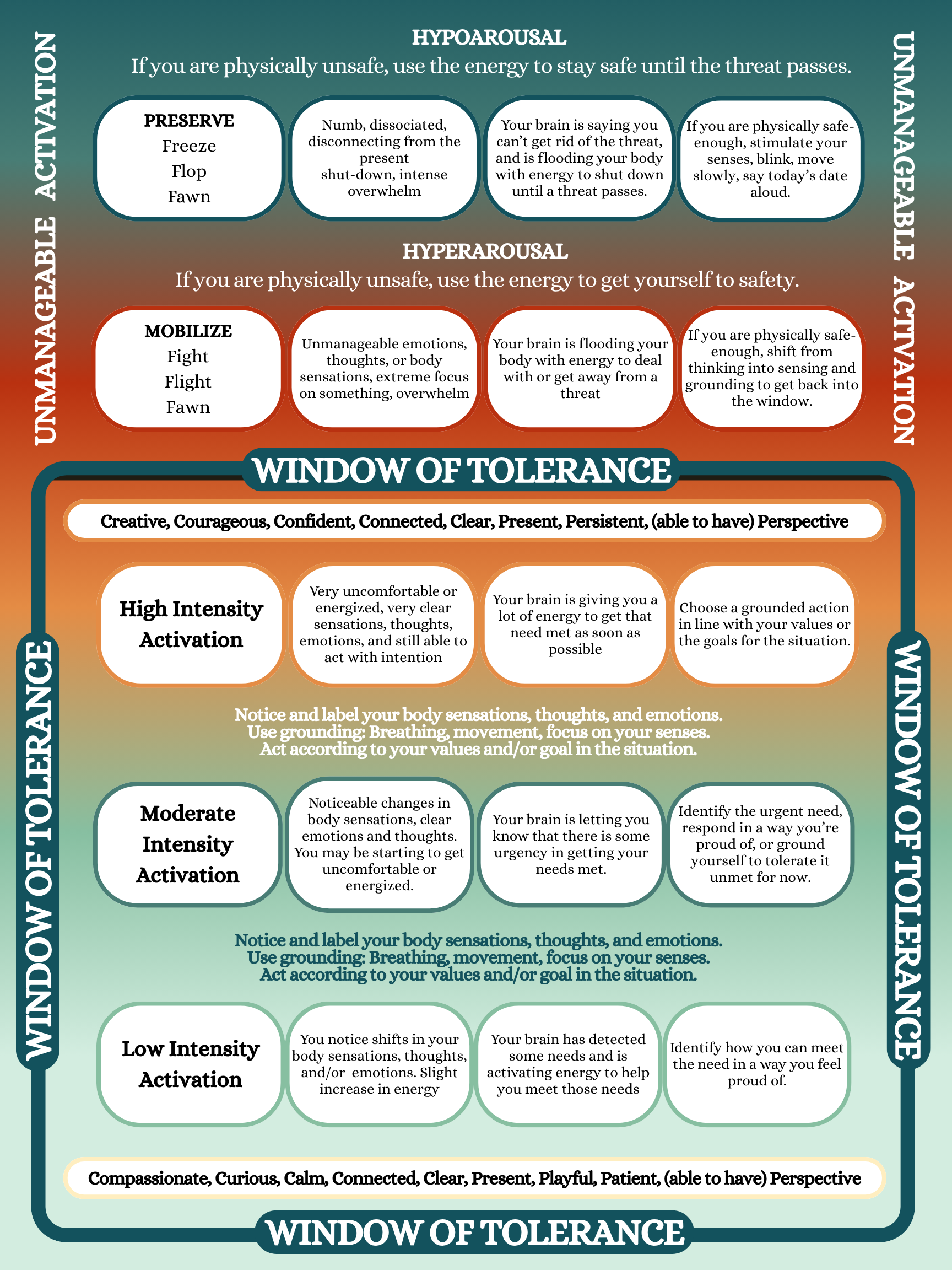 When you’re inside your window, you experience manageable activation—your body and mind are working together to meet your needs in a grounded, intentional way.